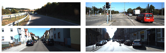- Geiger, A.; Lenz, P.; Urtasun, R. Are we ready for autonomous driving? The KITTI vision benchmark suite. In Proceedings of the 2012 IEEE Conference on Computer Vision and Pattern Recognition, Providence, RI, USA, 16–21 June 2012; pp. 3354–3361. [Google Scholar] [CrossRef]