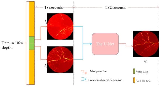 The length of an A-line is 1024. Normally, there is only a small part of the data that contains desired information (vessels and capillaries). We calibrated the distribution of the valid data and discarded the useless 1024 depths. Only valid data were chosen for image reconstruction, which saved computing resources and time.