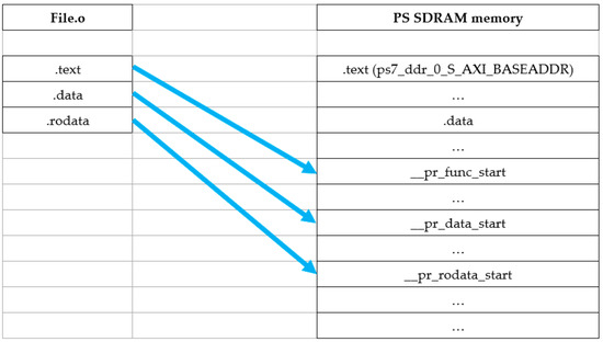Copying the different sections of an object file to the dedicated memory space of the PS SDRAM.