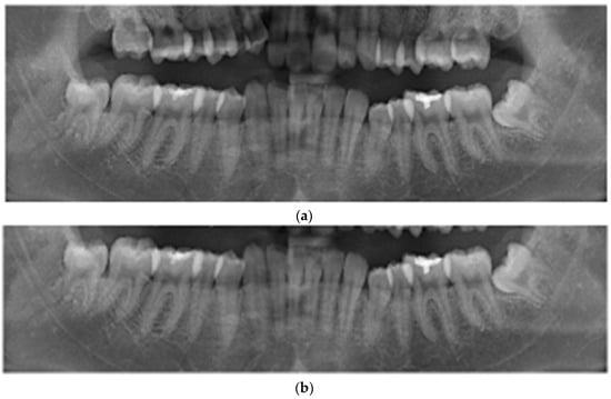 - Gurses, A.; Oktay, A.B. Tooth Restoration and Dental Work Detection on Panoramic Dental Images via CNN. In Proceedings of the 2020 Medical Technologies Congress (TIPTEKNO), Antalya, Turkey, 19–20 November 2020; IEEE: New York, NY, USA, 2020; pp. 1–4. [Google Scholar] [CrossRef]