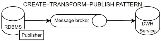The Create–Transform–Publish (CTP) pattern is a data processing workflow that focuses on the streamlined process of data transformation from creation to utilization in data warehousing. The pattern starts with an RDBMS where the data are created. These data are then forwarded to a message broker, which is responsible for transforming the data as required. After processing, the data are published to a data warehouse (DWH) service for storage, analysis, and future retrieval.