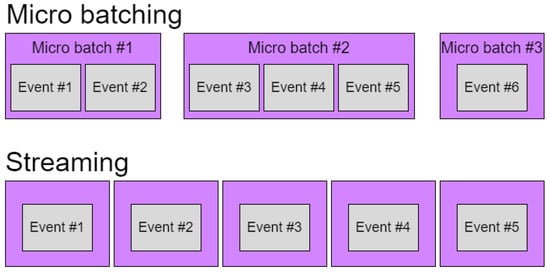 Given today’s need to process a substantial amount of data in real time, Spark supports streaming data processing in addition to batch processing. It is important to emphasize that streaming data in Spark is not really streaming but processing mini-batches, which is an acceptable solution for many use cases. This allows Spark to be used in a wide variety of use cases ranging from streaming ones, such as finances, telecommunications, and IoT, to batch data ones like ML model training, data analysis, etc. [27,28,29].