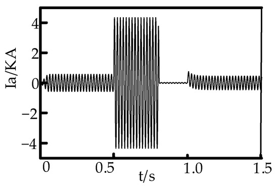 At the midpoint of the 10 km route, a short circuit occurred between phases A and B, with a transition resistance of 10 Ω. The waveform of the A-phase current is shown in Figure 6.