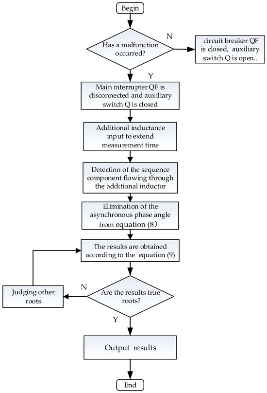 At this point, the phase angle error can be eliminated, and Equation (8) can be simplified. The fault location criterion as depicted in Equation (9) can be established.
