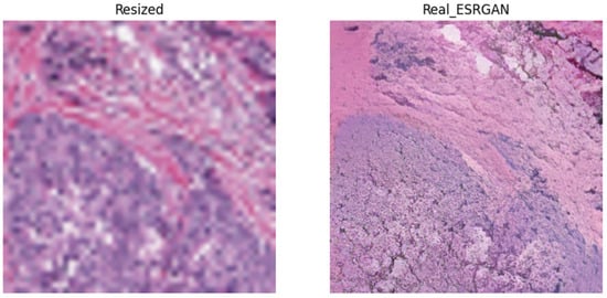 Breast histopathology image 2 resized (left) and Real_ESRGAN generated (right).