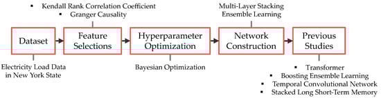 With digital technologies becoming more incorporated into smart city management systems, machine learning (ML) is widely proposed as a forecasting model to predict the electricity load with high accuracy in smart cities []. Having the capability to accurately forecast the electricity load is necessary to allow the smart grids to distribute the electric power in advance to avoid overloading the electricity delivery network [], better renewable energy integration with traditional energy to generate electricity [], and minimize the operation loss during the peak hours []. As the scale of electricity infrastructure and reliability directly correlates to economic growth, it is crucial to maintain reliable service to avoid financial losses and interruption of other essential services [].