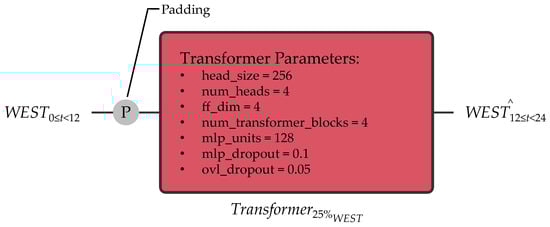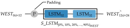 The training dataset normalized from −1 to 1 using the min-max normalization method. Then, using the same minimum and maximum values found in each electricity load zone from the training dataset, the same scale was applied to the evaluation dataset to be normalized for simulating the real-world application, where the latest data are not always used to update the models. After that, sequencing was applied to the datasets to forecast the next hour using the current one hour of electricity load data, which translates to 12 steps in independent and dependent variables. Although the training dataset used a sliding window moving 1 step per sequence to capture intricate patterns, the evaluation data used a sliding window moving 12 steps instead to ease the evaluation. Finally, MV simulated in the independent variables where to create additional ten independent variables sequences for each zone.
