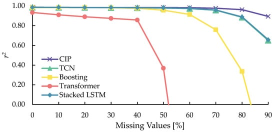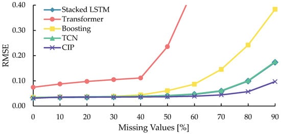 When the MV percentages in the independent variables ranged from 1% to 90%, CIP relies on the “improvise” forecasting method in Level 1, where all in ’s Level 0 are activated for the meta-model in Level 1 to combine their forecasts. As each has its effective MV percentage range to forecast the electricity load, combining the result with ensures minimal forecasting accuracy degradation as the MV percentage rises, which is impossible with the bagging ensemble learning that averages the forecasts from the base models.
