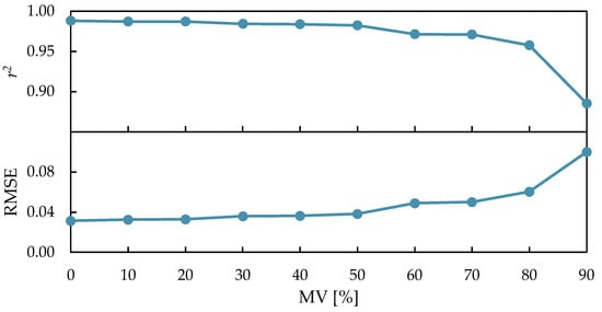 When the MV percentages in the independent variables exceed 90%, CIP relies on the “copycat” forecasting method in Level 2, where in Level 2 reconstruct the forecasts in zone by combining the forecast from the meta-models in Level 1 taken from , , and . Although it is inferior in accuracy, it performs well in high MV environments where “predict” and “improvise” failed.