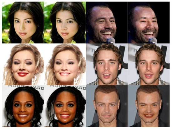 - Karras, T.; Aila, T.; Laine, S.; Lehtinen, J. Progressive growing of gans for improved quality, stability, and variation. arXiv 2017, arXiv:1710.10196. [Google Scholar]