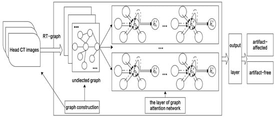 Artifacts are the main cause of degradation in CT image quality and diagnostic accuracy. Because of the complex texture of CT images, it is a challenging task to automatically detect artifacts from limited image samples. Recently, graph convolutional networks (GCNs) have achieved great success and shown promising results in medical imaging due to their powerful learning ability. However, GCNs do not take the attention mechanism into consideration. To overcome their limitations, we propose a novel Regional–Temporal Graph Attention Network for motion artifact detection from computed tomography images (RT-GAT). In this paper, head CT images are viewed as a heterogeneous graph by taking regional and temporal information into consideration, and the graph attention network is utilized to extract the features of the constructed graph. Then, the feature vector is input into the classifier to detect the motion artifacts. The experimental results demonstrate that our proposed RT-GAT method outperforms the state-of-the-art methods on a real-world CT dataset.