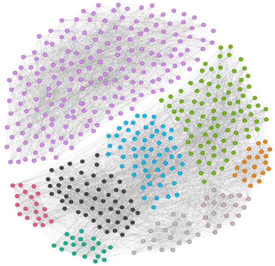 - Barabási, A.L.; Albert, R. Emergence of scaling in random networks. Science 1999, 286, 509–512. [Google Scholar] [CrossRef]