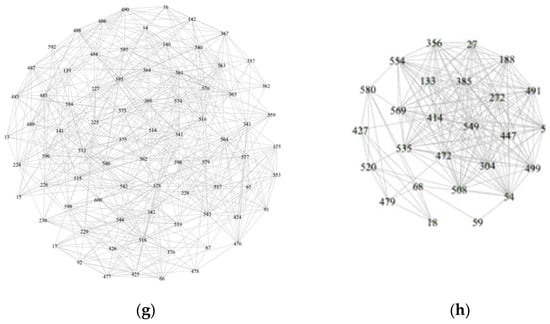 As shown in Figure 4, the graph was constructed based on regional–temporal information. Multi-dimension network topological characteristics combined with physical characteristics were fused as node feature vectors. From the level perspective, at the pixel level, topological characteristics were obtained as node attributes, and at the slice level, an RT-graph was constructed. As seen from Figure 5a–h, community detection was conducted, and the communities from 1 to 8 are demonstrated to show the clustering of the CT images.
