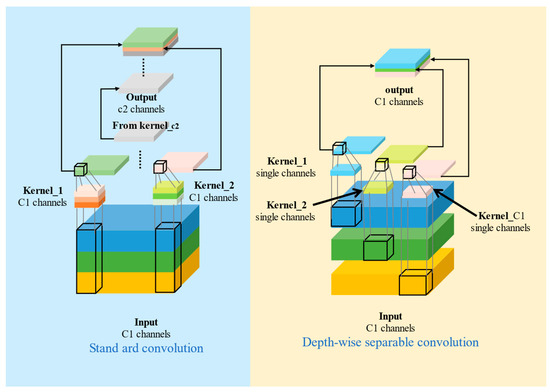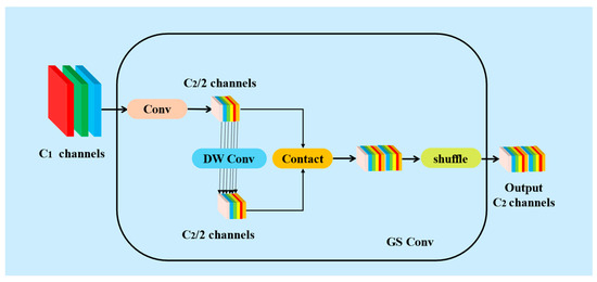 GSConv is a special convolution operation that uses GS (Group Separable) convolution to improve the model’s performance [35,36]. The goal of GSConv is to make the output of Depthwise Separable Convolution (DSC) as close as possible to Standard Convolution (SC) while reducing computational cost. GSConv can better balance the accuracy and speed of the model.