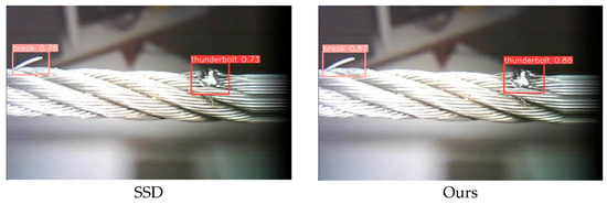 The data from the Table 5 show that applying GSConv in the fifth and seventh layers can effectively optimize the model’s performance. When GSConv is applied in the fifth and seventh layers, the mAP50 of the ‘Thunderbolt’ category reaches 84.5%, and the mAP50 of the ‘Break’ category reaches 86.3%. At the same time, the model’s parameter size is reduced from 6.3 to 5.7 MB, and GFLOPs are also reduced from 8.1 to 7.5. These results indicate that GSConv can effectively reduce the model’s complexity and computational load while maintaining its performance. Therefore, it is believed that applying GSConv in the fifth and seventh layers is an effective optimization strategy, which will help improve the practicality and generalization ability of the model.