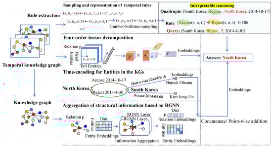- Liu, Y.; Ma, Y.; Hildebrandt, M.; Joblin, M.; Tresp, V. Tlogic: Temporal logical rules for explainable link forecasting on temporal knowledge graphs. In Proceedings of the AAAI Conference on Artificial Intelligence, Virtual, 22 February–1 March 2022; Volume 36, pp. 4120–4127. [Google Scholar]
