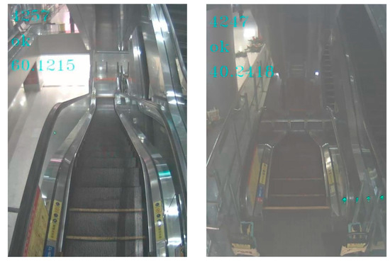 As shown in Figure 8, in similar scenes, the quality of the left image is significantly higher than that of the right image. The score of the left image is 60.1215 and the score of the right image is 40.2418. The proposed hybrid model can objectively evaluate image quality in real scenes. The better image quality is, the higher the evaluation score is, and it is more consistent with subjective evaluation.