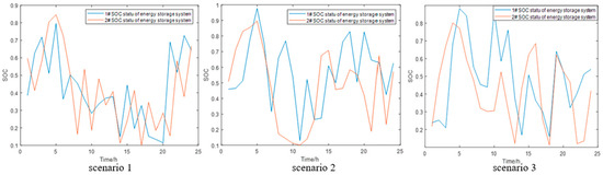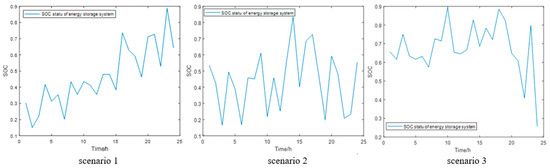 SOC status of ESS for scenarios 1 to 3.