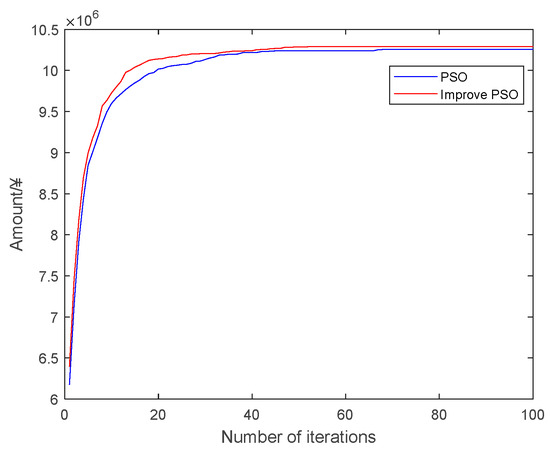 To ascertain the enhanced particle swarm algorithm’s efficacy and utility in addressing the issue delineated herein, a comparative analysis of the algorithm’s performance pre- and post-enhancement toward solving the designated problem was conducted, with the computational outcomes depicted in Figure 8. An examination of the convergence rates of both algorithms reveals that the post-improvement version exhibits accelerated convergence, thereby underscoring the selected algorithm’s superiority.