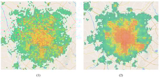 For an agent, i.e., a driver, in a given time window, changes can be made in both spatial and service states. The spatial state is represented by , and the time state by . If a city is divided into square kilometers, and time is divided into the average service duration of an order, which is 20 min, the combined spatial and temporal states result in a state space of over 500,000 choices for each agent. Even if each agent works for 14 h a day—the maximum allowed by the platform—and makes one state change in each time window, the maximum number of states explored per day is only 250,000. The vastness of the state space, coupled with the limited capacity to explore it, makes it difficult for agents to effectively learn through reinforcement. Therefore, it is necessary to reduce the size of the state space. However, simple state discretization does not adequately address this issue. This paper adopts the following two methods to reduce the state space available to agents.