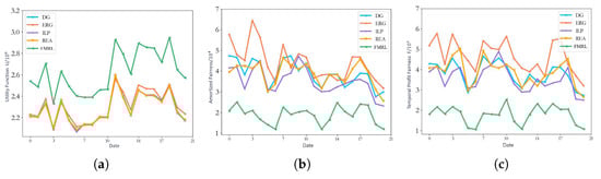 The results on utility function, amortization fairness, and temporal earnings fairness. (a) Utility; (b) amortization fairness; (c) temporal earnings fairness.