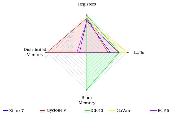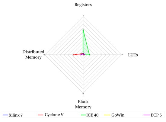 - Shah, D.; Hung, E.; Wolf, C.; Bazanski, S.; Gisselquist, D.; Milanovic, M. Yosys+nextpnr: An Open Source Framework from Verilog to Bitstream for Commercial FPGAs. In Proceedings of the 2019 IEEE 27th Annual International Symposium on Field-Programmable Custom Computing Machines (FCCM), San Diego, CA, USA, 28 April–1 May 2019; pp. 1–4. [Google Scholar] [CrossRef]