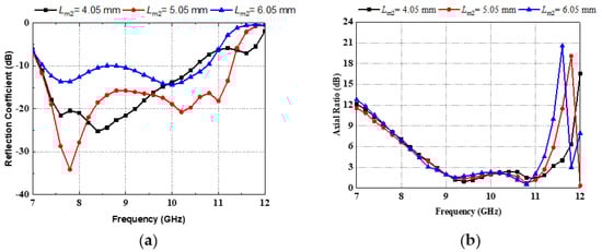 Parametric study of Lm2. (a) Reflection coefficient. (b) Axial ratio.