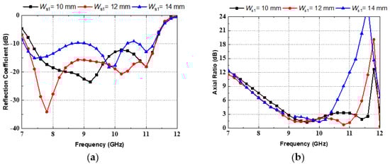 Parametric study of Ws1. (a) Reflection coefficient. (b) Axial ratio.