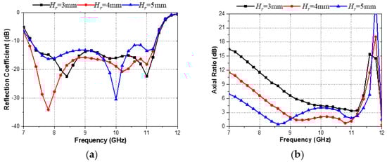 Parametric study of Hr. (a) Reflection coefficient. (b) Axial ratio.
