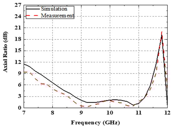 Simulated and measured AR of the proposed antenna.
