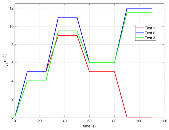 Motivated by these findings, we tested Algorithm 1 in three tests, obtained using the same velocity profile as before (Test 1), and two additional profiles (for Test 2 and Test 3), as depicted in Figure 2.