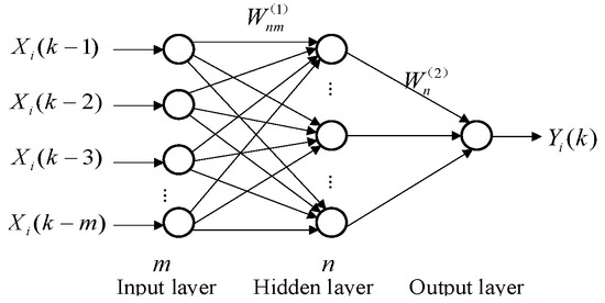 In Figure 13, Xi(k − a)(a = 1, 2, 3…, m) and Yi(k) denote the a-th input and the k-th output from the i-th sample, respectively. In the neural network, Xi, , , Yi are represented as shown in Table 3, below.