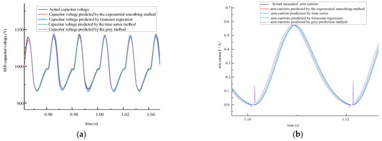 When the MMC operating parameters are not changed, the SM capacitor voltage variation curve, the arm current variation curve, and their prediction curve are as shown in Figure 15.