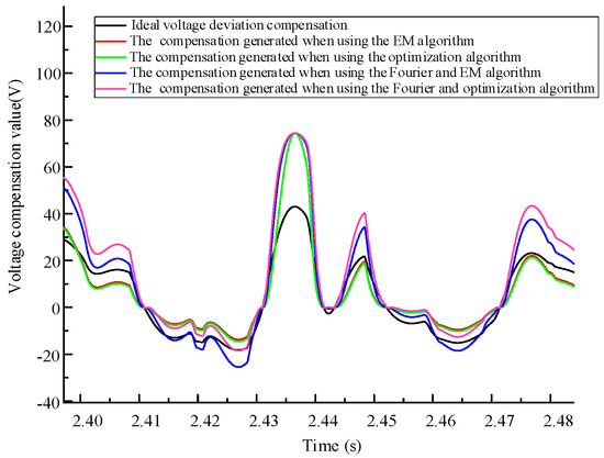 As shown in Figure 17, when the mixed Gaussian distribution of voltage offset is fabricated using the EM algorithm and the sampling frequency, its received compensation voltage amount is closest to the ideal voltage deviation compensation amount. Then, the deviation compensation effect is as shown in Figure 18.