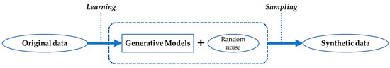A generative model is a probabilistic and machine learning model to generate synthetic data that resemble given original data [8,9,10]. Figure 3 illustrate the process of generative modeling [8].