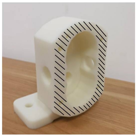 The workpiece considered in our study is the housing of a gear pump, as shown in Figure 3. Instead of considering iron, the actual material that is used for such parts, our workpiece, again as a mock-up, is made of resin material. The surface to be milled is its front face, which is indicated in Figure 3.