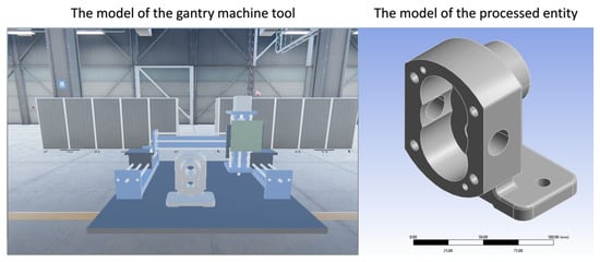 The virtual twin of our milling station, together with the workpiece, is shown in Figure 5. The relevant 3D models were created using PTC Creo [] and saved as STEP format files, including the milling machine assembly, the gear pump housing, etc. We then used a Blender plugin (OCC Import) [] to convert the STEP files to Blender format, which is further converted into FBX formatted files readable by Unity 3D (as it cannot directly read either STEP or Blender files). It is noted that conversions of file formats do result in loss of certain information, e.g., material properties, chemical compositions, etc. In addition, we also applied the merging of some model parts in the original machine assembly to simply the model in the virtual twin, thus reducing the computational load. Despite the simplification and the conversions made in the virtual twin modeling, we always pay special attention to retaining the key information essential to our modeling, such as motion pairs defining the relative motion of, e.g., lead-screw and nut, a key dimension of the workpiece.