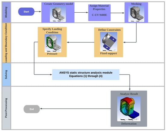 To enable automatic execution of this simulation module, we applied a Python pip pyWbunit [] using Python script, which defines all necessary model settings to automatically drive the computational model in ANSYS Workbench, instead of using ANSYS GUI for setting up and running the model manually. The flowchart of the simulation procedure, as defined with this Python script, is shown in Figure 6.