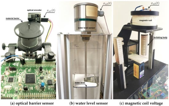 In this section, experimental measurements of the noisy signals from three real, original mechatronic system setups shown in Figure 13 have been conducted. The objective of the research is to evaluate the responses of the developed mixed mode universal analog ADF339 with FPGA-based digital control of parameters to real challenging signals, which exhibit oscillations affected by noise with various standard deviations and frequencies.