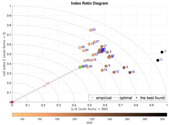 During this research, different measures are investigated: classical (normal), robust and L-moments, tail index and the Geweke-Porter-Hudak estimator of the fractional order of the ARFIMA filter. They are presented following the statistical approach named moment ratio diagrams (MRD) or L-moments ratio diagram (LMRD). Our work plans to supplement the estimation residuum analysis with the multi-criteria approach named the IRD—(Index Ratio Diagrams) using various measures.