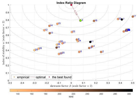 The -stable distribution has an increasing potential in the assessment approaches [], as it allows to measure the data diversity (scale factor ) and other shaping factors such as skewness () and the tailedness (). These features nominate them as the potential measures in the residual analysis as well. Their application might be constrained in case of data, which does not fall into the stable families, which should be validated before their use.