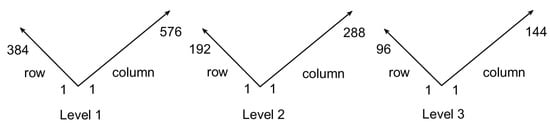 and if this condition is not satisfied, a pyramid is formed in which the images at the ith level are formed by passing the images at the th level through a low pass filter and then downsampling the filtered images. The coefficients of the low pass filter are [21,22],