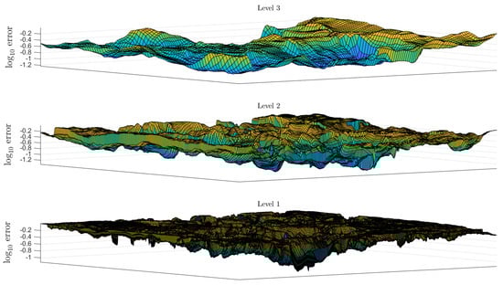The error at level three (top), level two (middle) and level one (base) of the pyramid, for Example 3.