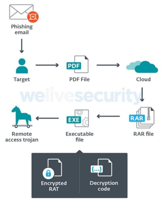 Figure 2. Behavioral execution AsyncRAT (payload) obtained by the ESET [35] campaign APT—C-36 [33].