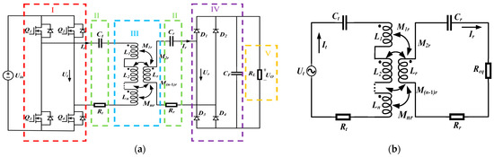 Circuit diagram for the IPT system: (a) system structure diagram and (b) equivalent circuit diagram.