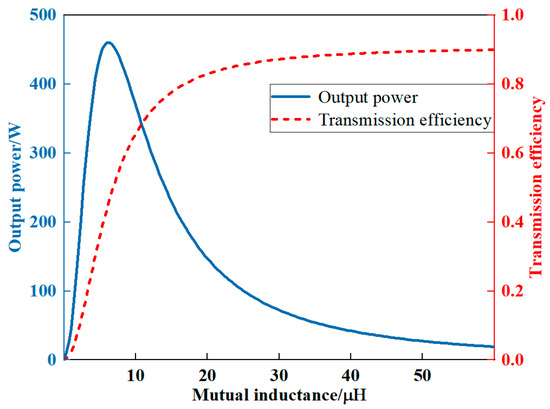 Figure 3 demonstrates that as the mutual inductance increases, the system output power initially rises and then declines. Concomitantly, the system transmission efficiency increases with the growth of mutual inductance, eventually reaching a plateau after surpassing a specific value. It is important to note that Mtr is linked to both the magnetic flux (ϕ) and the magnetic induction intensity (B). Therefore, through the design and optimization of the magnetic coupling mechanism, achieving a uniform magnetic field is possible, leading to an enhancement in the system’s transmission performance.