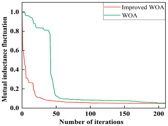 - With the minimization of the coil’s mutual inductance fluctuation rate as the optimization target, the parameters of the DMC coil are optimized using the improved whale algorithm, which enhances the resistance to misalignment of the DMC coil and ensures the efficient and stable operation of the IPT system.