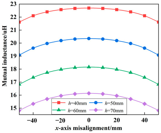 Figure 13 shows the law of mutual inductance change under the horizontal misalignment of the transmitting coil at different h values. The specific data are shown in Table 3.
