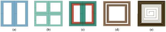 Coil structure schematic: (a) DD; (b) QD; (c) DDQ; (d) reference [15]; and (e) this paper.