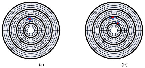 The concentric zone model is divided into four zones of different specifications. In order of distance from near to far, each zone contains two, four, four, and four rings, and each ring in the zone contains sixteen, thirty-two, forty-five, and sixteen sector ring regions, respectively. The parameter settings for the R-RNR module are as follows: m, , , and . The parameter settings for the R-VIR module are as follows: m, , m, and . The parameter settings for the R-GPF module are as follows: , m, m, and . The parameter settings for the R-GPVJ module are as follows: . The parameter settings for the R-GPS module in the region are as follows: m.